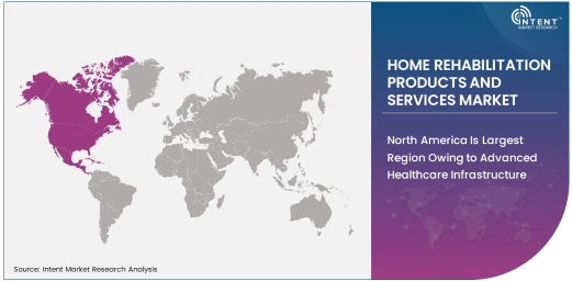 North America currently holds the largest share of the home rehabilitation products and services market. The region’s advanced healthcare infrastructure, high disposable incomes, and increasing elderly population contribute to its dominance. In particular, the United States represents a significant portion of this market, with a large demand for home healthcare products driven by the aging Baby Boomer generation and a shift toward home-based care models. Additionally, favorable reimbursement policies and widespread insurance coverage further facilitate market growth in the region.