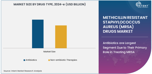 The market for MRSA drugs is evolving with the introduction of new antibiotic classes and non-antibiotic therapies that offer improved efficacy, especially against resistant strains. Antibiotics remain the mainstay of treatment, but non-antibiotic therapies are gaining traction as adjunct therapies or in cases where antibiotics are not effective. The increasing focus on research and development, along with regulatory approvals for newer treatment options, is expected to further propel the growth of this market.