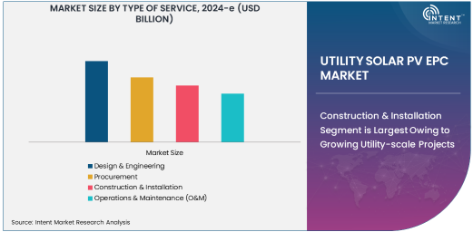 The Utility Solar PV EPC market is driven by various service types, including design and engineering, procurement, construction and installation, and operations and maintenance (O&M). Among these, the construction and installation sub-segment is the largest, primarily due to the increasing demand for large-scale utility solar projects. The growing emphasis on renewable energy and governments' push for sustainability targets have led to a surge in utility-scale solar installations across the globe. This segment includes the physical construction of solar power plants, which involves integrating photovoltaic systems, electrical infrastructure, and compliance with safety and regulatory standards. As a result, the construction and installation market continues to dominate the utility solar sector, driven by accelerated infrastructure development.