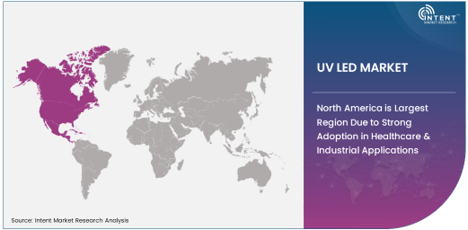 North America is currently the largest region in the UV LED market, driven by the high adoption of UV-C LEDs in healthcare and industrial applications. The region’s strong healthcare infrastructure, combined with increasing awareness of environmental and public health issues, makes it an ideal market for UV-C technology. In particular, the US has seen a surge in demand for UV-C LEDs for air and surface sterilization within healthcare facilities, schools, and commercial spaces. Furthermore, the industrial sector in North America is increasingly adopting UV LED technology for various applications such as water purification and curing processes. The region’s advanced technological capabilities, regulatory frameworks, and high investment in research and development continue to fuel the growth of UV LED adoption.