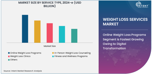 In particular, with the growing shift toward a more sedentary lifestyle and unhealthy eating habits, the weight loss services market is focusing on providing tailored solutions to meet individual needs. With the advent of technology, online platforms are gaining traction by offering virtual consultations, personalized meal plans, and fitness regimens. At the same time, traditional services like weight loss clinics and fitness programs remain popular, offering in-person support and expertise. This multi-faceted approach to weight loss has led to diverse market growth, with a growing preference for comprehensive programs that address not only weight loss but overall health improvement.
